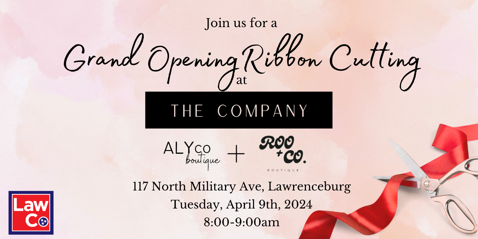 Join us Tuesday, April 9th from 8-9am for a Grand Opening Ribbon Cutting at The Company, a co-branded boutique including items from AlyCo Boutique and Roo + Co. Boutique. Located at 117 North Military Ave, Lawrenceburg.